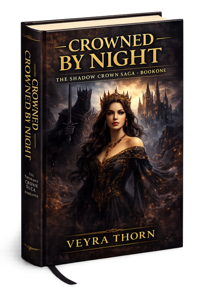 Crowned by Night opens with fire, hidden blood, a stolen identity, and a heroine dragged into the court of a feared shadow king. It is built for romantasy readers who want emotional tension, power, danger, and a binge-worthy world.
