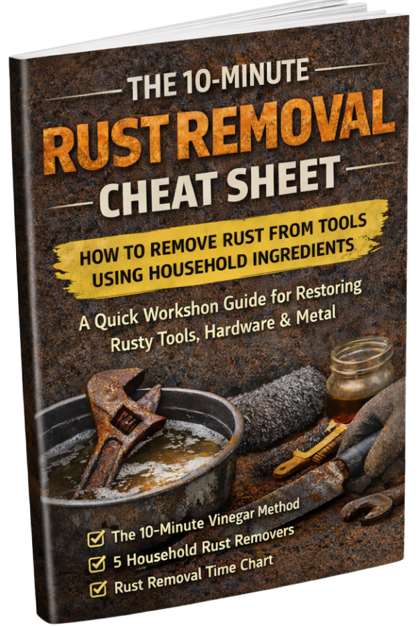 Download the free cheat sheet that shows you the exact 6-step method to remove rust from tools, hardware & metal — no specialty chemicals needed.
